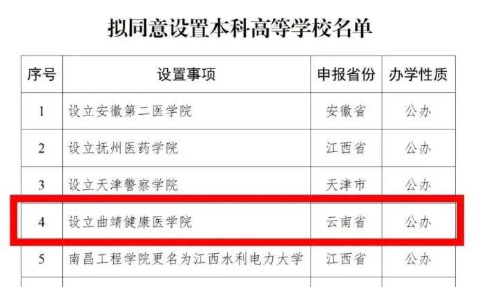 这事还有一层,曲靖是个什么处所呢,它是云南的副核心城市,是滇东北的一个大门,这些年一曲喊着要建区域医疗核心,可下层医疗的人才洞穴老是填不上,曲靖健康医学院升了本科,摆了然就是要去扛起滇东,以至整个云南东部片区培育医学人才的这个担子。